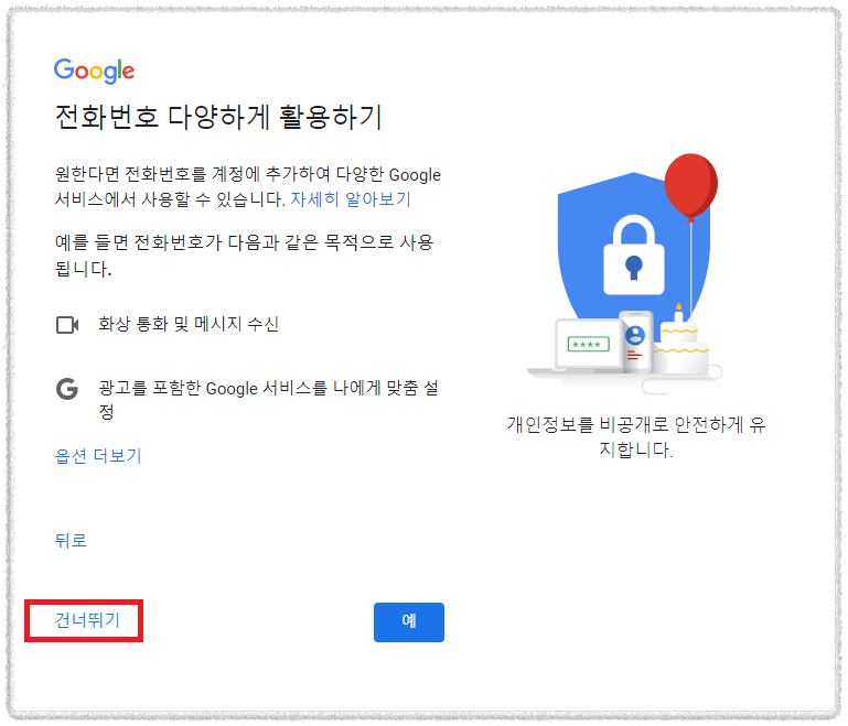 전화번호 활용은 건너뛰기 해주었어요