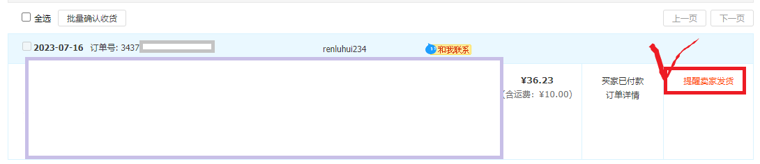 알리왕왕을 통해 메세지 전달하고 화면을 보다보니 저렇게 오른쪽에 판매자에게 배송을 상기시키는 알람기능이 있었다. 번역기로 해석하면 " remind the seller of the shipment" 라고 뜬다.