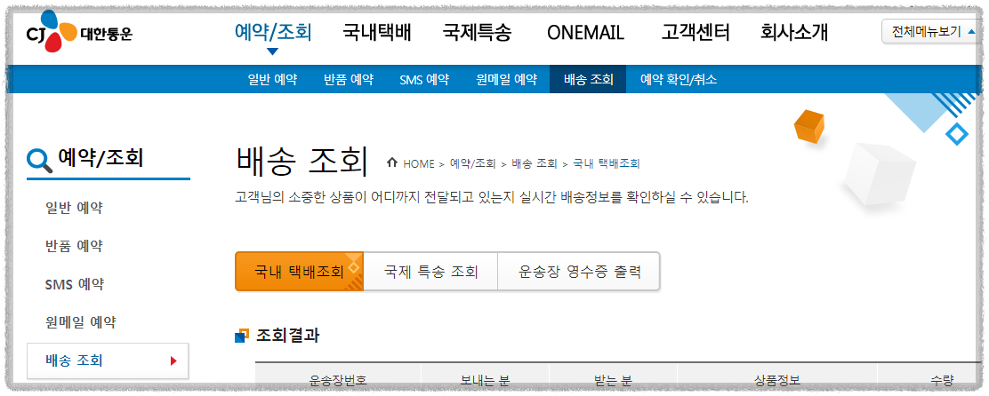 부리나케 대한통운 담당자분에게 연락하고자 홈페이지에서 배송조회하였다.