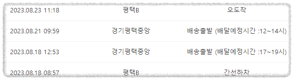 배송 완료되었겠다 즈음 해서 송장번호 추적을 하던 중, 확인된 '오도착' 건