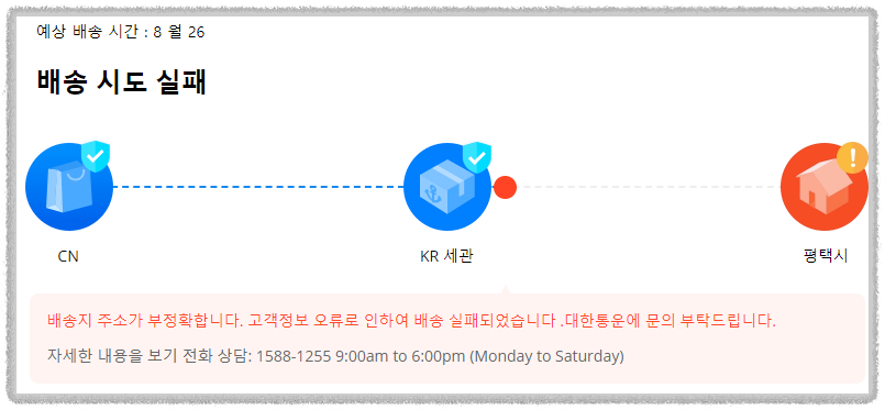 이상하다 싶어 알리 추적도 확인해보니 역시나 동일한 내용..!