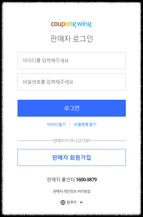 "쿠팡 판매자센터" 라고 검색해도 되고 위와 같이 "쿠팡 윙"이라고 검색해서 사이트에 접속해주세요