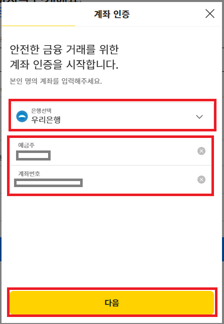 계좌를 입력한 뒤, 다음을 눌러주시면
