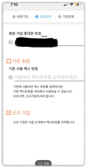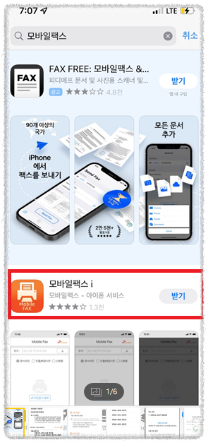 앱 다운 화면에서 '모바일팩스' 검색 후 위와 같이 핸드폰 번호로 가입을 진행해주세요