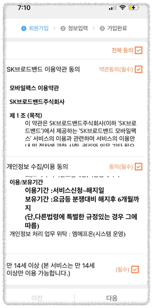 동의는 필수만 하고 진행하겠습니다.