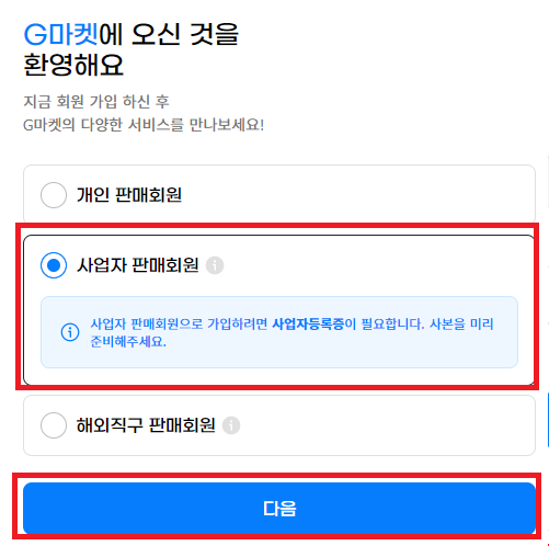 마켓에서의 약간의 노출 차이가 있기에 저는 이번엔 일반사업자(국내)로 가입하도록 할게요