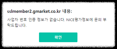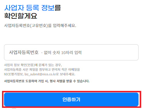 (여기서 NICE평가정보에 사업자번호가 등록되어 있지 않다면 등록하라고 나옵니다!)