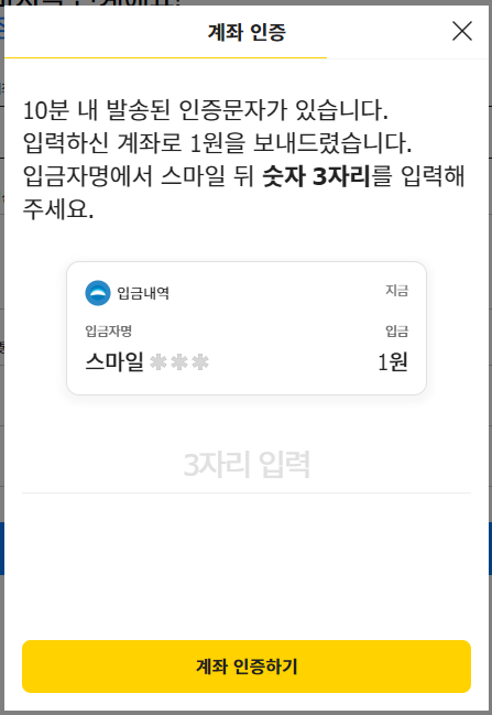 인증번호까지 입력해서 계좌를 인증하여 주세요
