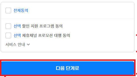 모두 동의하기 누르면 해제된 상태로 다음단계로 넘어갑니다.