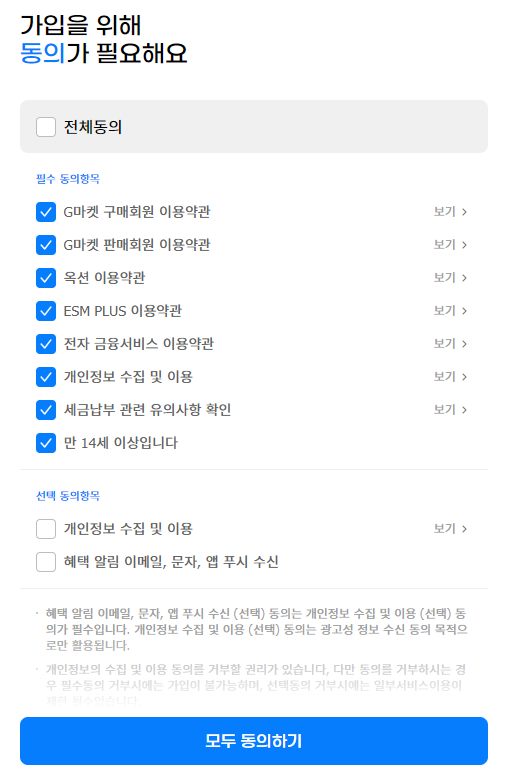 먼저, ESM(G마켓,옥션) 가입 전