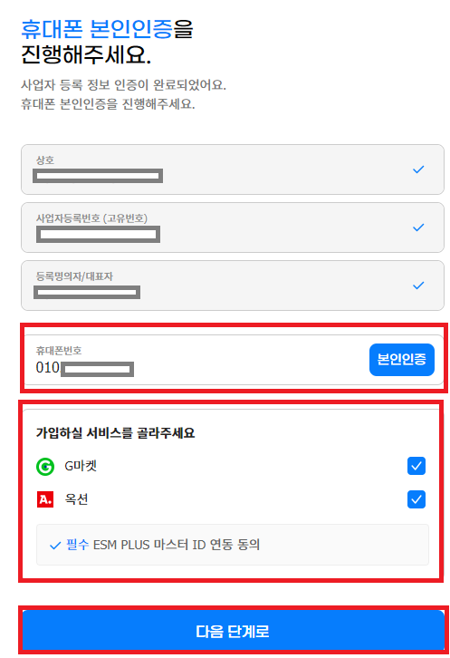 G마켓,옥션 둘다 체크되어져 있는 것 확인 후 다음단계로 넘어가주세요
