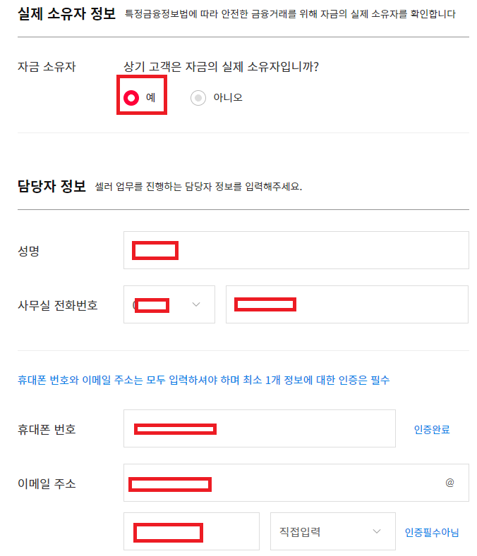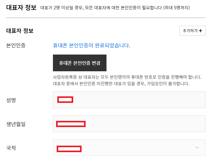 담당자정보도 대표정보와 동일하게 입력해주시면 되겠습니다.