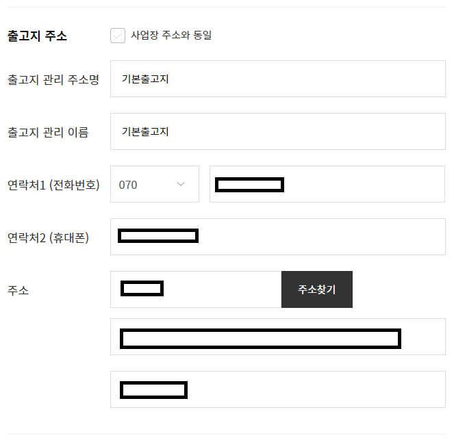 다음은 출고지주소와 반품지주소를 입력해주세요