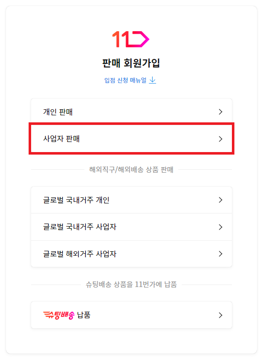 "사업자 판매회원" 를 클릭해주세요