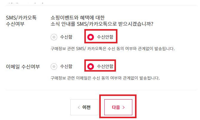 광고 안내는 받지 않는 것으로 하고 다음 눌러주세요