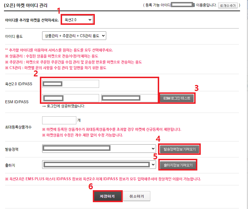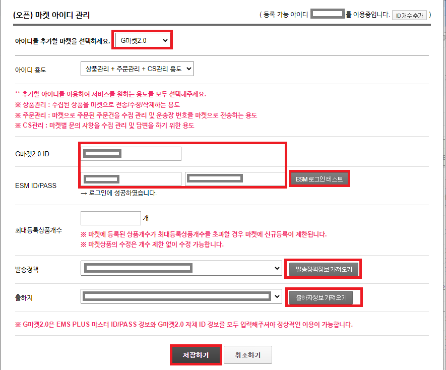 기본적으로 옥션 2.0과 동일하게 ESM 아이디도 동일하게 입력해주시면 됩니다.