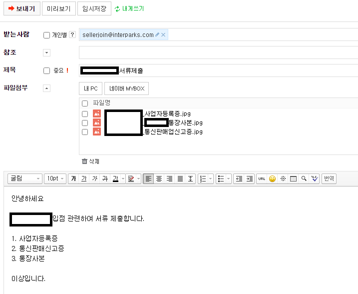 이제 아까 메일주소로 서류만 제출하면되겠습니다 :)