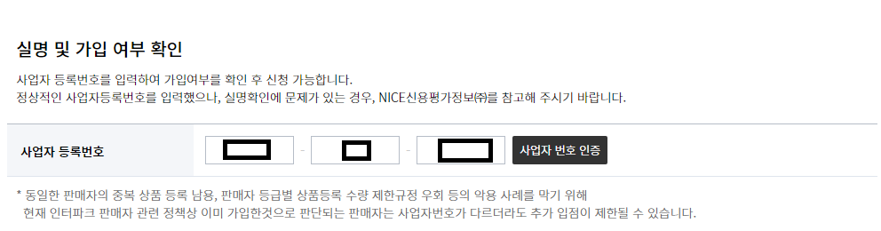그리고 아래 사업자번호를 입력해주고 사업자번호인증을 눌러주세요