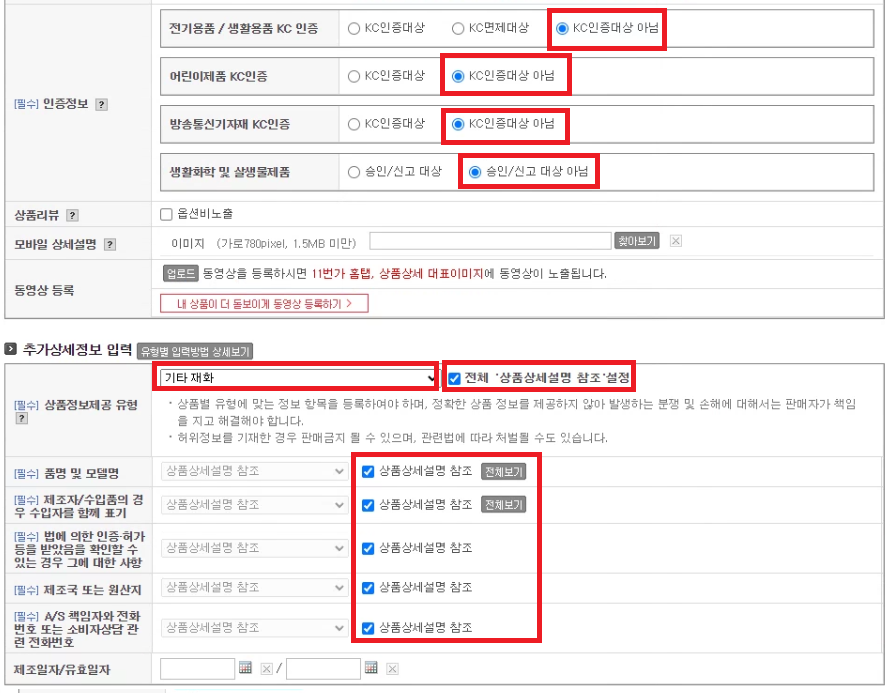 아래 인증정보 및 추가상세정보 입력은 위와 같이 체크해주세요