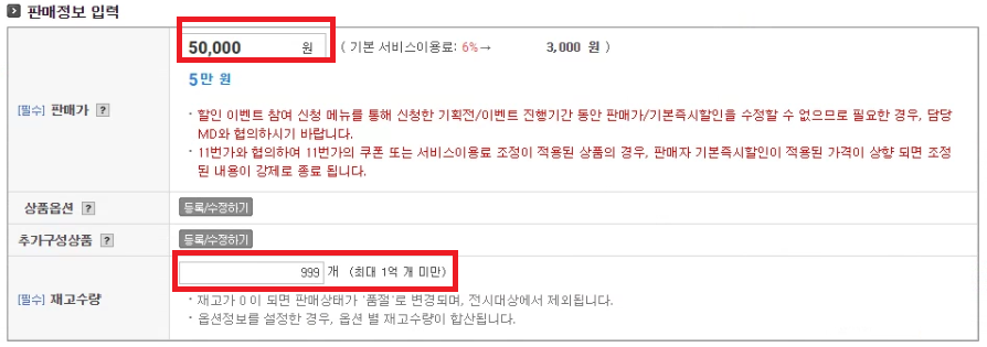 가격과 재고를 입력해주세요