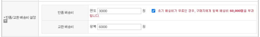 중간에 '반품/교환 배송비 설정' 에서 위와 같이 입력,체크해주세요