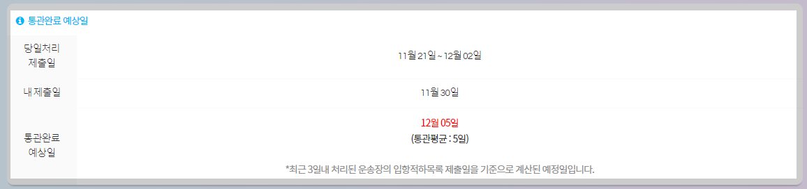 통관정보, 운송편정보, 통관완료 예상일부터 최근통관소요시간까지!
