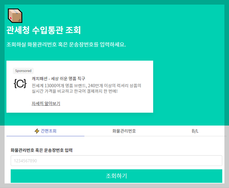 간략화된 관세청 화물통관조회 서비스