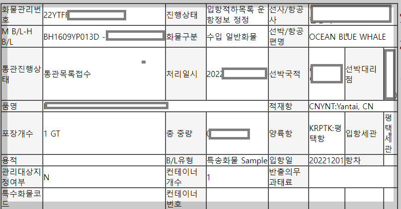 다음은 국내 입항된 것이 확인되었다면 좀 더 자세히 통관정보를 확인하면 좋겠죠!