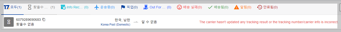 전통적인 전세계 소포 트래킹 사이트, 하지만 '알수없음' 으로 조회가 안되는 경우가 많은 듯 합니다.😤