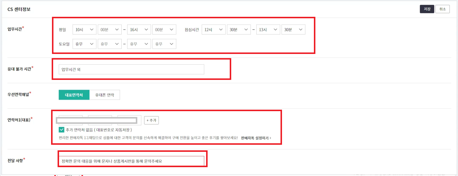 반품지는 이전 판매자정보 설정에서 실제 반품 수령지로 변경되어 있는지만 확인하고 넘어가주세요