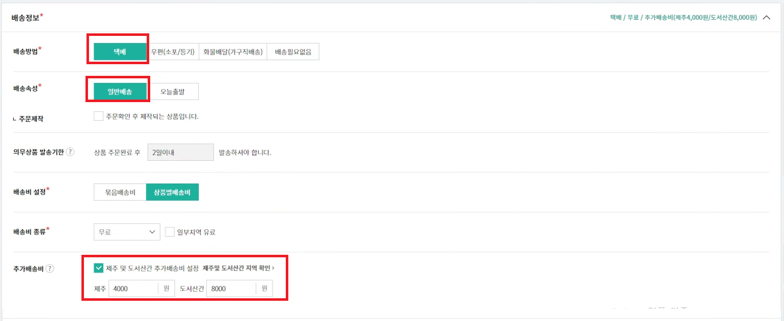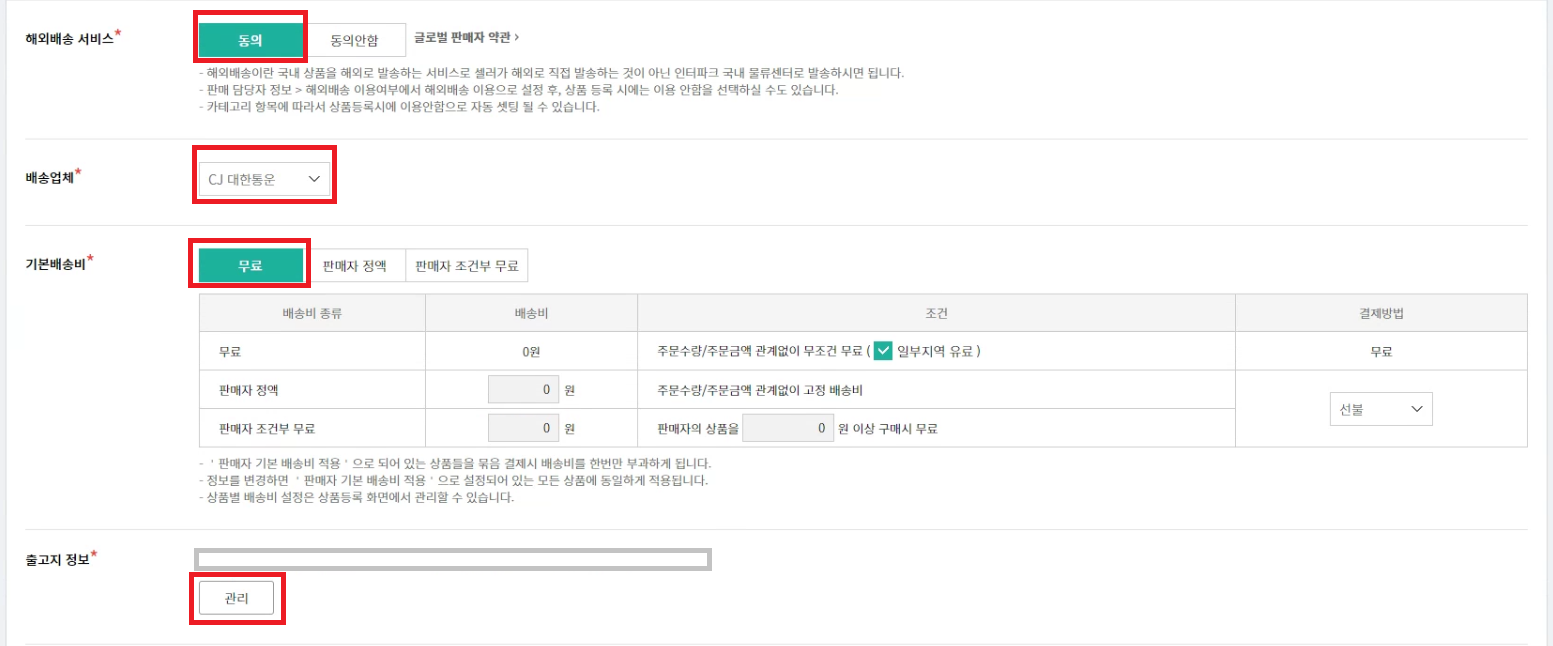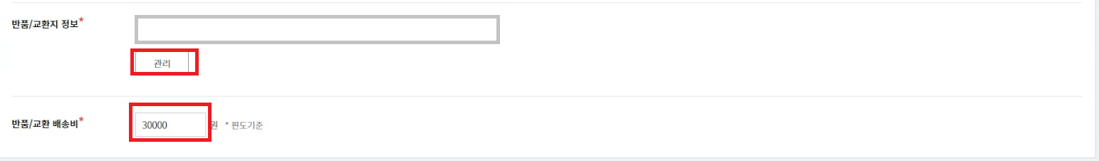 배송정보를 위와 같이 설정해주고, 반품지를 실제 반품지에 맞게 설정해주세요 (출고지는 무방)