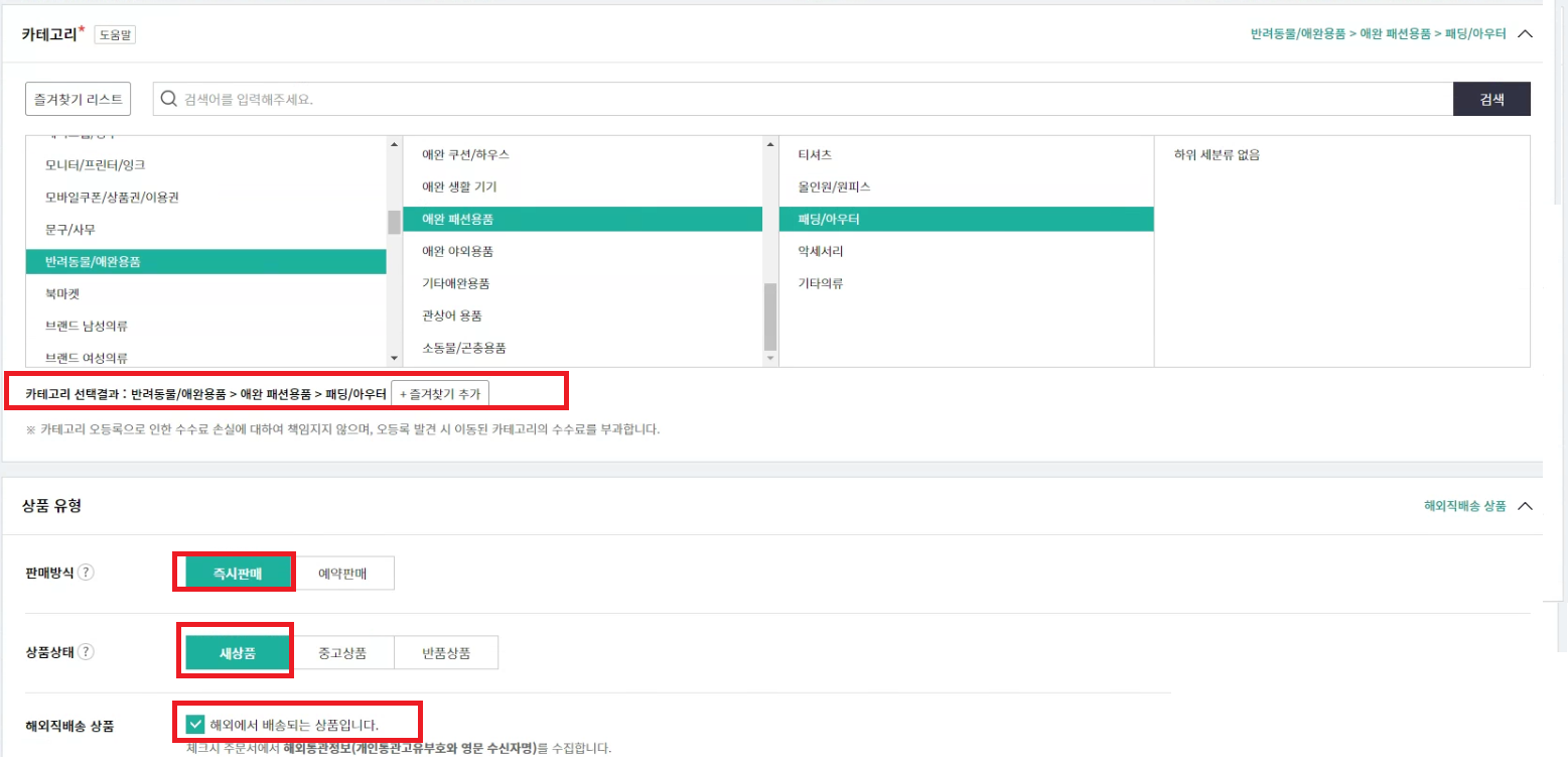 카테고리 임의 선택 후 위와 같이 설정해주세요