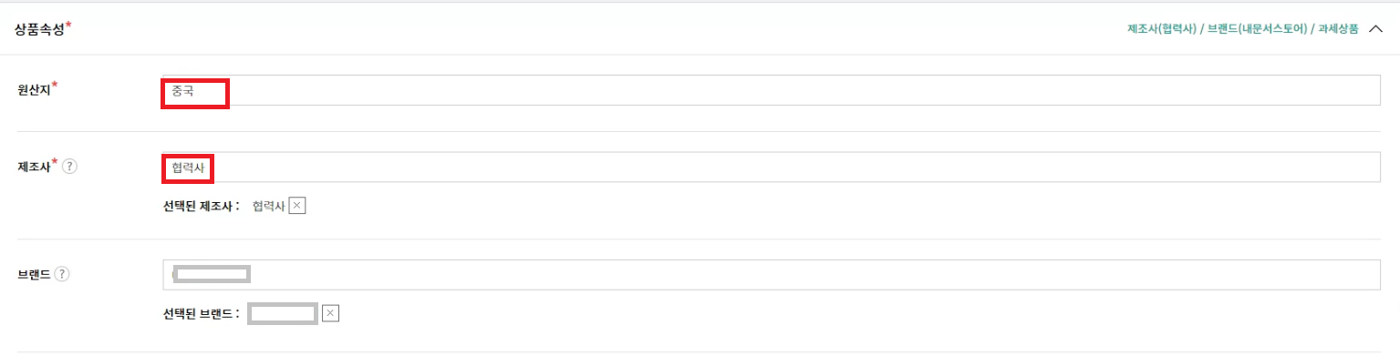 원산지 중국, 제조사 협력사, 브랜드는 상호명으로 직접입력 해주세요