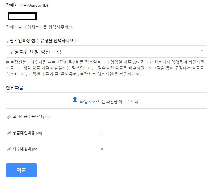 증빙자료까지 첨부하여 제출! (매입비용,회수배송비,구입내용)