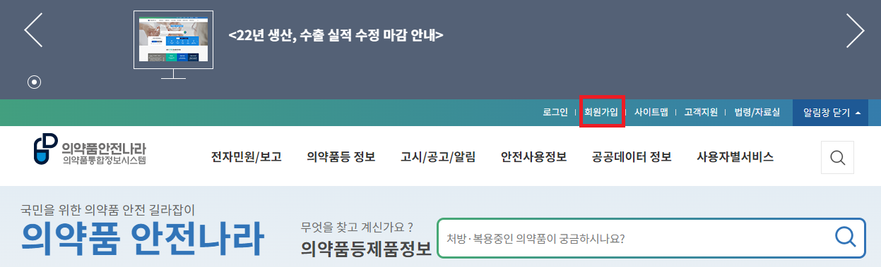 네이버에 '의약품안전나라'를 검색하시거나 아래 URL로 접속해주세요