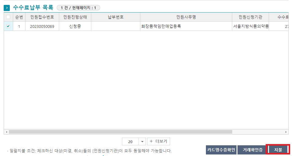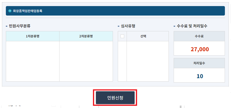 수수료 금액 확인 후, 민원신청을 클릭해주세요