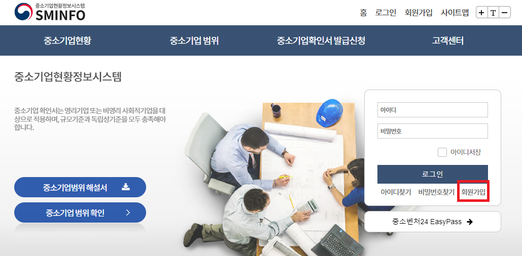 로그인 중소벤처24 EasyPass 중소기업현황정보시스템 중소기업 확인서는 영리기업 또는 비영리 사회적기업을 대상으로 적용하며, 규모기준과 독립성기준을 모두 충족해야 합니다.
