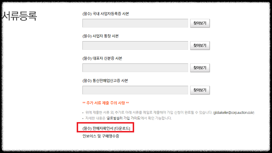 판매자확인서의 경우에는 아래에 "글로벌셀러 가입 가이드" 를 보시면 자세히 확인이 가능합니다.