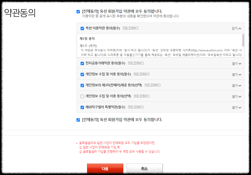 해당 화면에서 "옥션 회원가입"을 클릭해줍니다.