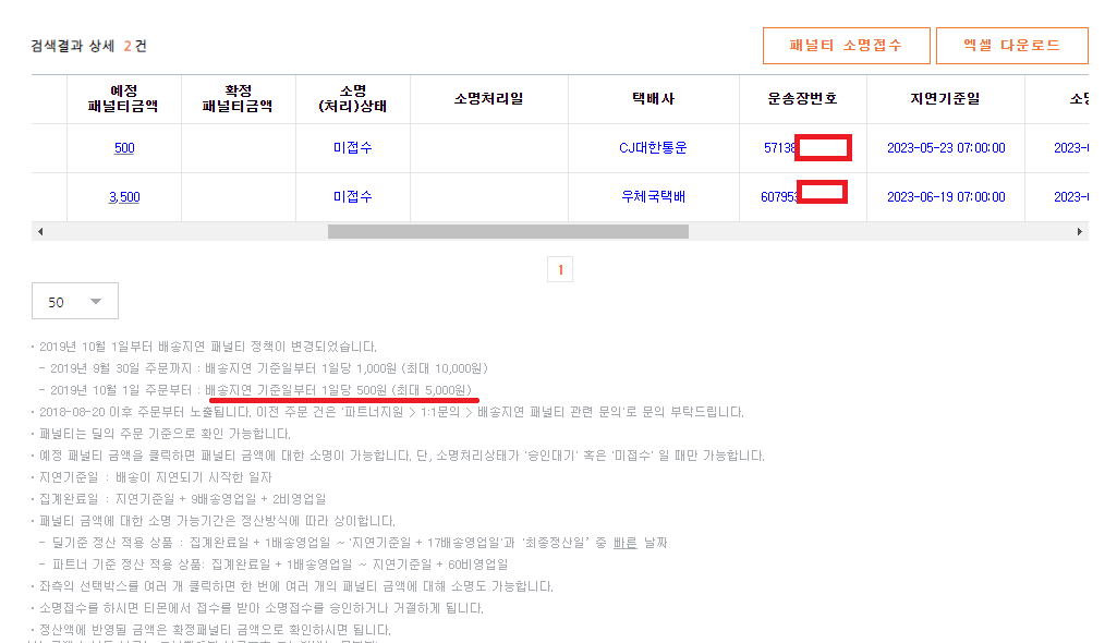 확인해보니, 실제 상품 도착일과 다르게 계산된 패널티금액도 있더라구요